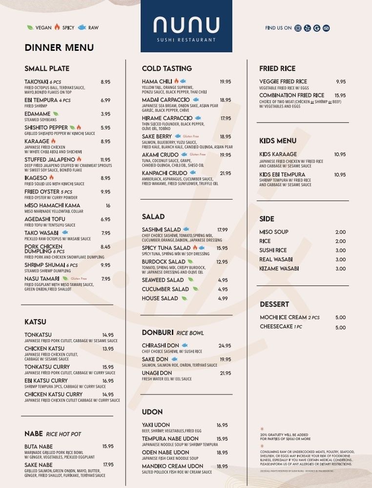 Sushi Nunu in Frisco, TX is a top Japanese sushi bar known for its fresh and diverse menu. With a lively and inviting atmosphere, it offers a variety of seating options and attentive service. Customers rave about the quality of the food, including the crispy curry chicken katsu, flavorful sushi rolls, and unique dishes like creamy egg roe udon noodles. The staff's friendly demeanor and willingness to offer samples make exploring the menu a delightful experience. Don't miss out on favorites like the super toro roll and hama chili. Sushi Nunu is the go-to spot for those looking for a high-quality sushi experience in the area.